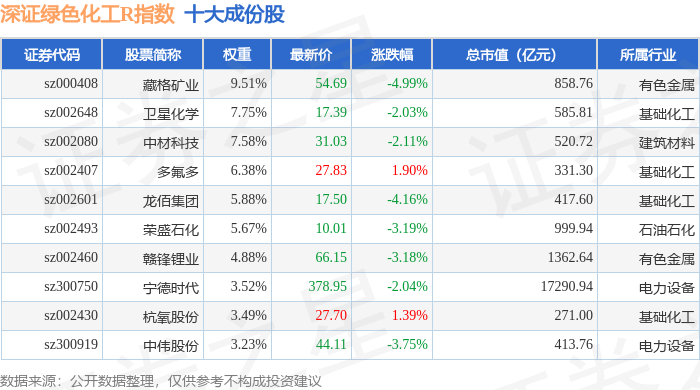 深证绿色化工R(470076)指数十大成份股详情如下: