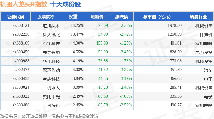 机器人龙头R(480071)指数十大成份股详情如下: