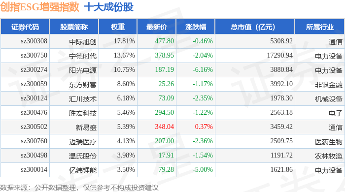 资金流向方面,创指ESG增强(970034)指数成份股当日主力资金净流出合计75.22亿元,游资资金净流入合计26.88亿元,散户资金净流入合计48.34亿元。成份股资金流向详情见下表: