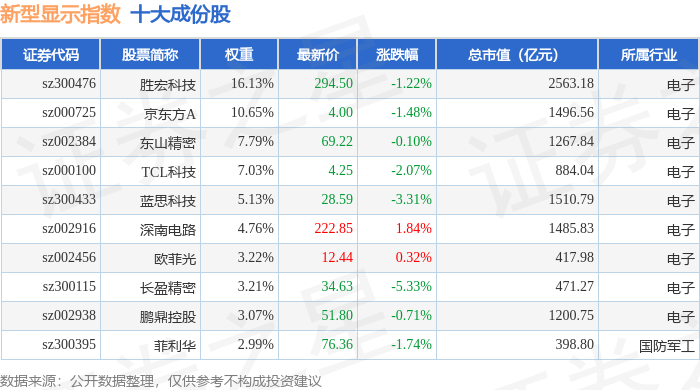 新型显示(970048)指数十大成份股详情如下: