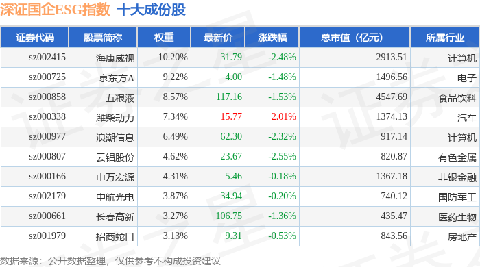 深证国企ESG(970055)指数十大成份股详情如下: