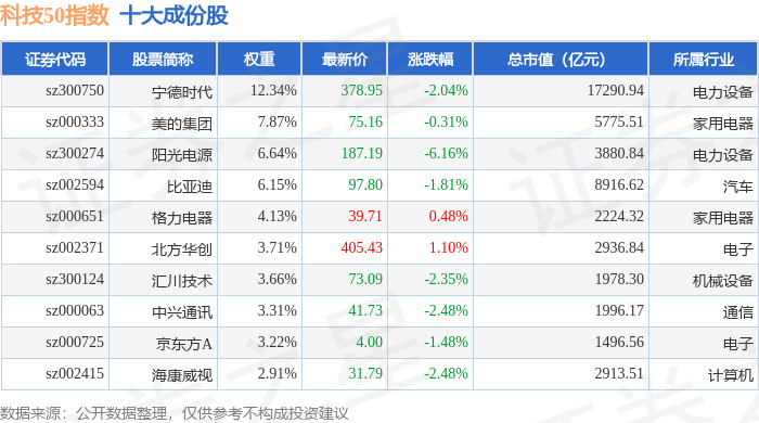 证券之星消息,11月4日,科技50(970080)指数报收于3188.51点,跌1.92%,成交1283.23亿元,换手率1.63%。当日该指数成份股中,上涨的有8家,杰瑞股份以5.11%的涨幅领涨,下跌的有42家,阳光电源以6.16%的跌幅领跌。
