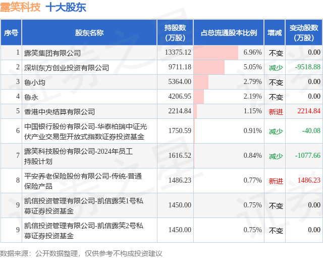 根据露笑科技2025年三季报公布的十大股东详情如下: