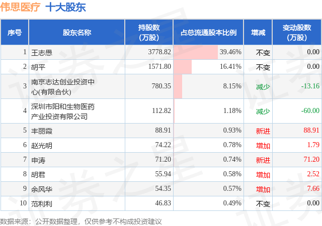 根据伟思医疗2025年三季报公布的十大股东详情如下: