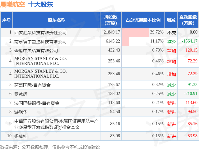 根据晨曦航空2025年三季报公布的十大股东详情如下: