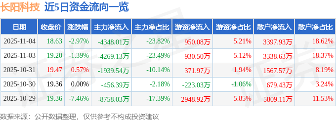 11月4日的资金流向数据方面,主力资金净流出4348.01万元,占总成交额23.82%,游资资金净流入950.08万元,占总成交额5.21%,散户资金净流入3397.93万元,占总成交额18.62%。