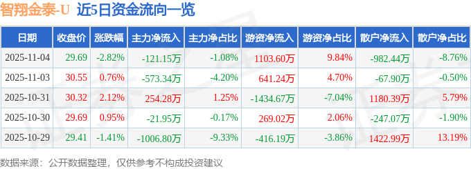 证券之星消息,截至2025年11月4日收盘,智翔金泰(688443)报收于29.69元,下跌2.82%,换手率3.23%,成交量3.77万手,成交额1.12亿元。