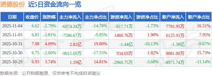 证券之星消息,截至2025年11月4日收盘,诺德股份(600110)报收于6.62元,下跌2.79%,换手率4.09%,成交量70.94万手,成交额4.72亿元。