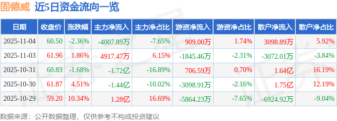 证券之星消息,截至2025年11月4日收盘,固德威(688390)报收于60.5元,下跌2.36%,换手率3.52%,成交量8.56万手,成交额5.24亿元。