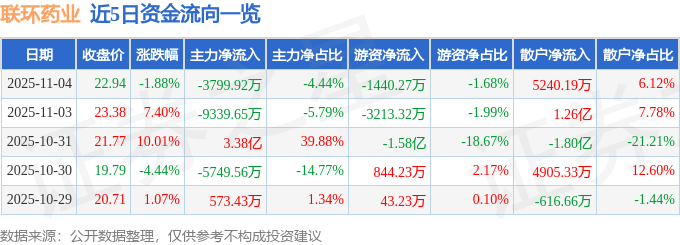 证券之星消息,截至2025年11月4日收盘,联环药业(600513)报收于22.94元,下跌1.88%,换手率13.0%,成交量37.11万手,成交额8.56亿元。