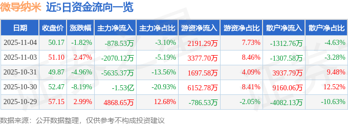 证券之星消息,截至2025年11月4日收盘,微导纳米(688147)报收于50.17元,下跌1.82%,换手率5.56%,成交量5.63万手,成交额2.83亿元。