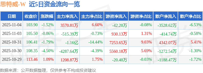 11月4日的资金流向数据方面,主力资金净流入3570.81万元,占总成交额6.6%,游资资金净流出42.2万元,占总成交额0.08%,散户资金净流出3528.62万元,占总成交额6.53%。