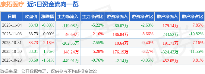 证券之星消息,截至2025年11月4日收盘,康拓医疗(688314)报收于33.43元,下跌0.89%,换手率0.84%,成交量6852.0手,成交额2282.96万元。