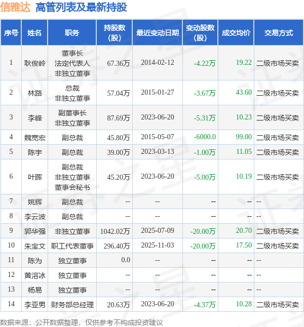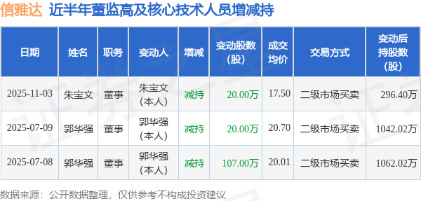 信雅达近半年内的董监高及核心技术人员增减持详情如下: