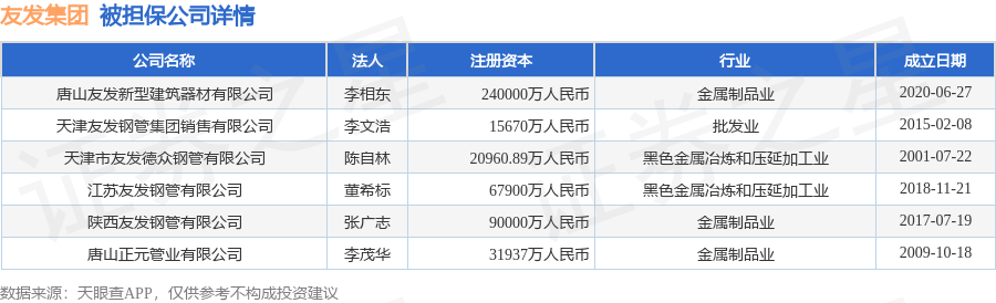 友发集团11月3日披露7笔对外担保,被担保公司6家。对外担保明细如下表: