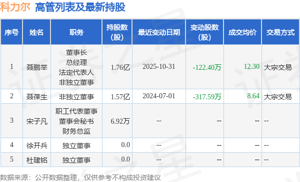 科力尔的高管列表及最新持股情况如下: