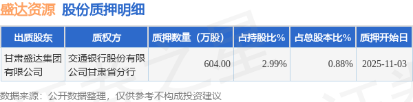 证券之星消息,盛达资源(000603)11月5日公开信息显示,股东甘肃盛达集团有限公司向交通银行股份有限公司甘肃省分行合计质押604.0万股,占总股本0.88%。质押详情见下表: