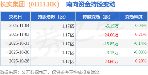 证券之星消息,11月4日南向资金减持5.15万股长实集团(01113.HK)。近5个交易日中,获南向资金增持的有2天,累计净增持23.45万股。近20个交易日中,获南向资金增持的有10天,累计净增持21.9万股。截至目前,南向资金持有长实集团(01113.HK)1.17亿股,占公司已发行普通股的3.34%。