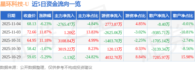 证券之星消息,截至2025年11月4日收盘,星环科技(688031)报收于68.13元,下跌6.23%,换手率8.82%,成交量8.29万手,成交额5.72亿元。