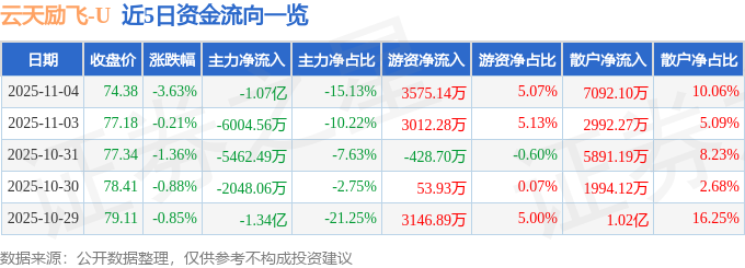 证券之星消息,截至2025年11月4日收盘,云天励飞(688343)报收于74.38元,下跌3.63%,换手率3.55%,成交量9.37万手,成交额7.05亿元。