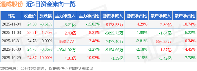 11月4日的资金流向数据方面,主力资金净流出3.21亿元,占总成交额15.03%,游资资金净流入9178.53万元,占总成交额4.29%,散户资金净流入2.3亿元,占总成交额10.74%。