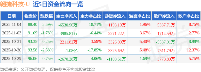 11月4日的资金流向数据方面,主力资金净流出6530.9万元,占总成交额10.71%,游资资金净流入1193.19万元,占总成交额1.96%,散户资金净流入5337.71万元,占总成交额8.75%。
