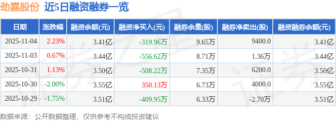 劲嘉股份融资融券信息显示,融资方面,当日融资买入2746.54万元,融资偿还3066.5万元,融资净偿还319.96万元。融券方面,融券卖出1.29万股,融券偿还3500.0股,融券余量9.65万股,融券余额44.29万元。融资融券余额3.41亿元。