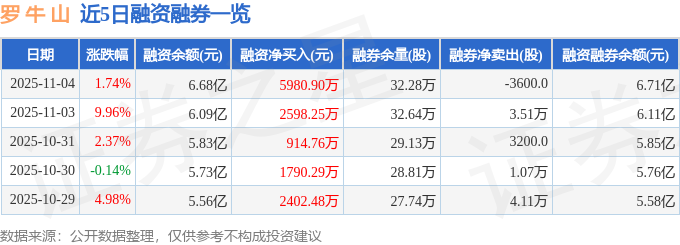 罗 牛 山融资融券信息显示,融资方面,当日融资买入1.63亿元,融资偿还1.04亿元,融资净买入5980.9万元,连续3日净买入累计9493.91万元。融券方面,融券卖出2300.0股,融券偿还5900.0股,融券余量32.28万股,融券余额264.7万元。融资融券余额6.71亿元。
