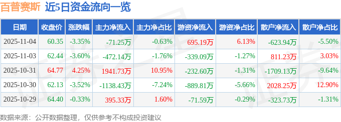 证券之星消息,截至2025年11月4日收盘,百普赛斯(301080)报收于60.35元,下跌3.35%,换手率1.48%,成交量1.87万手,成交额1.13亿元。