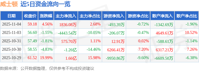 证券之星消息,截至2025年11月4日收盘,威士顿(301315)报收于59.18元,上涨4.56%,换手率32.26%,成交量11.94万手,成交额6.85亿元。