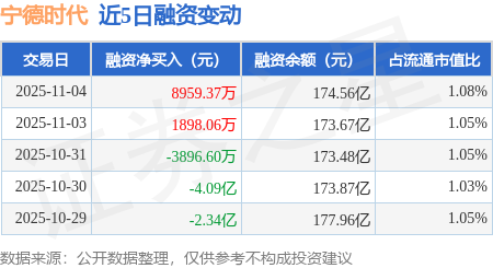 证券之星消息,11月4日,宁德时代(300750)融资买入8.49亿元,融资偿还7.6亿元,融资净买入8959.37万元,融资余额174.56亿元,当日融资净买入排名第31。