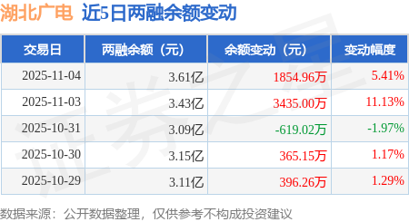 证券之星消息,11月4日,湖北广电(000665)融资买入8524.44万元,融资偿还6674.77万元,融资净买入1849.67万元,融资余额3.59亿元,近20个交易日中有11个交易日出现融资净买入。