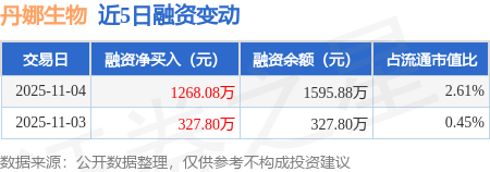 证券之星消息,11月4日,丹娜生物(920009)融资买入1527.88万元,融资偿还259.8万元,融资净买入1268.08万元,融资余额1595.88万元。
