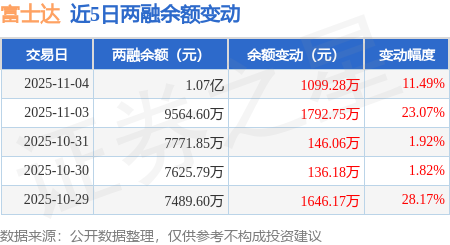 证券之星消息,11月4日,富士达(920640)融资买入4756.03万元,融资偿还3656.75万元,融资净买入1099.28万元,融资余额1.07亿元,近3个交易日已连续净买入累计3038.09万元,近20个交易日中有14个交易日出现融资净买入。