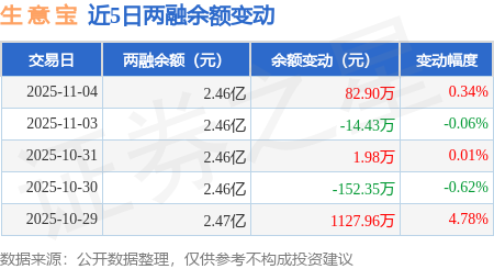 证券之星消息,11月4日,生 意 宝(002095)融资买入761.58万元,融资偿还678.67万元,融资净买入82.9万元,融资余额2.46亿元。
