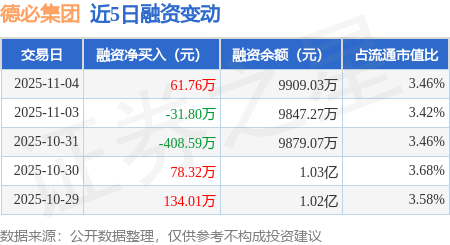 证券之星消息,11月4日,德必集团(300947)融资买入511.9万元,融资偿还450.13万元,融资净买入61.76万元,融资余额9909.03万元。