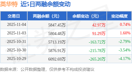 证券之星消息,11月4日,英华特(301272)融资买入409.53万元,融资偿还366.55万元,融资净买入42.97万元,融资余额5847.45万元。
