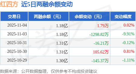 证券之星消息,11月4日,红四方(603395)融资买入568.97万元,融资偿还567.36万元,融资净买入1.61万元,融资余额1.18亿元。