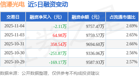 证券之星消息,11月4日,信濠光电(301051)融资买入487.67万元,融资偿还489.78万元,融资净卖出2.11万元,融资余额9757.47万元。