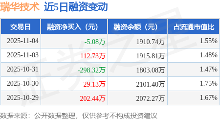 证券之星消息,11月4日,瑞华技术(920099)融资买入217.75万元,融资偿还222.83万元,融资净卖出5.08万元,融资余额1910.74万元,近20个交易日中有11个交易日出现融资净买入。