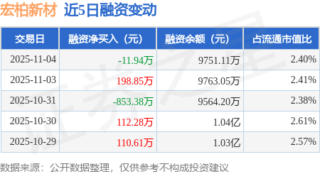 证券之星消息,11月4日,宏柏新材(605366)融资买入745.99万元,融资偿还757.93万元,融资净卖出11.94万元,融资余额9751.11万元,近20个交易日中有12个交易日出现融资净买入。