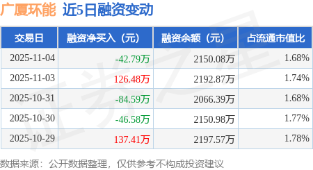 证券之星消息,11月4日,广厦环能(920703)融资买入85.06万元,融资偿还127.85万元,融资净卖出42.79万元,融资余额2150.08万元。