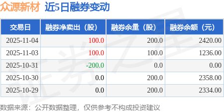 证券之星消息,11月4日,众源新材(603527)融资买入2064.98万元,融资偿还2120.69万元,融资净卖出55.71万元,融资余额1.47亿元。