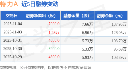 融券方面,当日融券卖出7000.0股,融券偿还0.0股,融券净卖出7000.0股,融券余量7.66万股,近3个交易日已连续净卖出累计2.33万股。