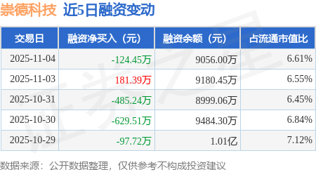 证券之星消息,11月4日,崇德科技(301548)融资买入547.13万元,融资偿还671.59万元,融资净卖出124.45万元,融资余额9056.0万元,近20个交易日中有13个交易日出现融资净买入。