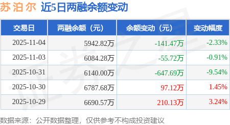 证券之星消息,11月4日,苏 泊 尔(002032)融资买入274.21万元,融资偿还415.64万元,融资净卖出141.44万元,融资余额5896.84万元。
