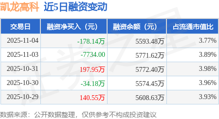 证券之星消息,11月4日,凯龙高科(300912)融资买入413.72万元,融资偿还591.86万元,融资净卖出178.14万元,融资余额5593.48万元。