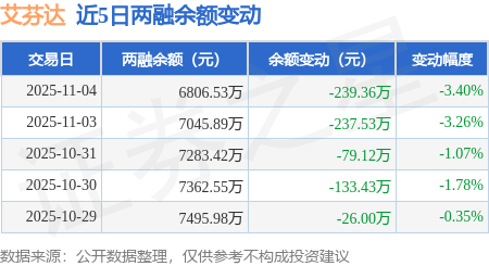 证券之星消息,11月4日,艾芬达(301575)融资买入541.87万元,融资偿还781.23万元,融资净卖出239.36万元,融资余额6806.53万元。