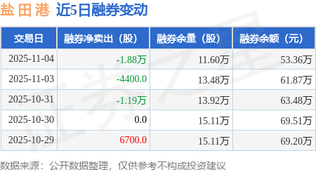 证券之星消息,11月4日,盐 田 港(000088)融资买入1704.52万元,融资偿还2310.53万元,融资净卖出606.01万元,融资余额2.93亿元。