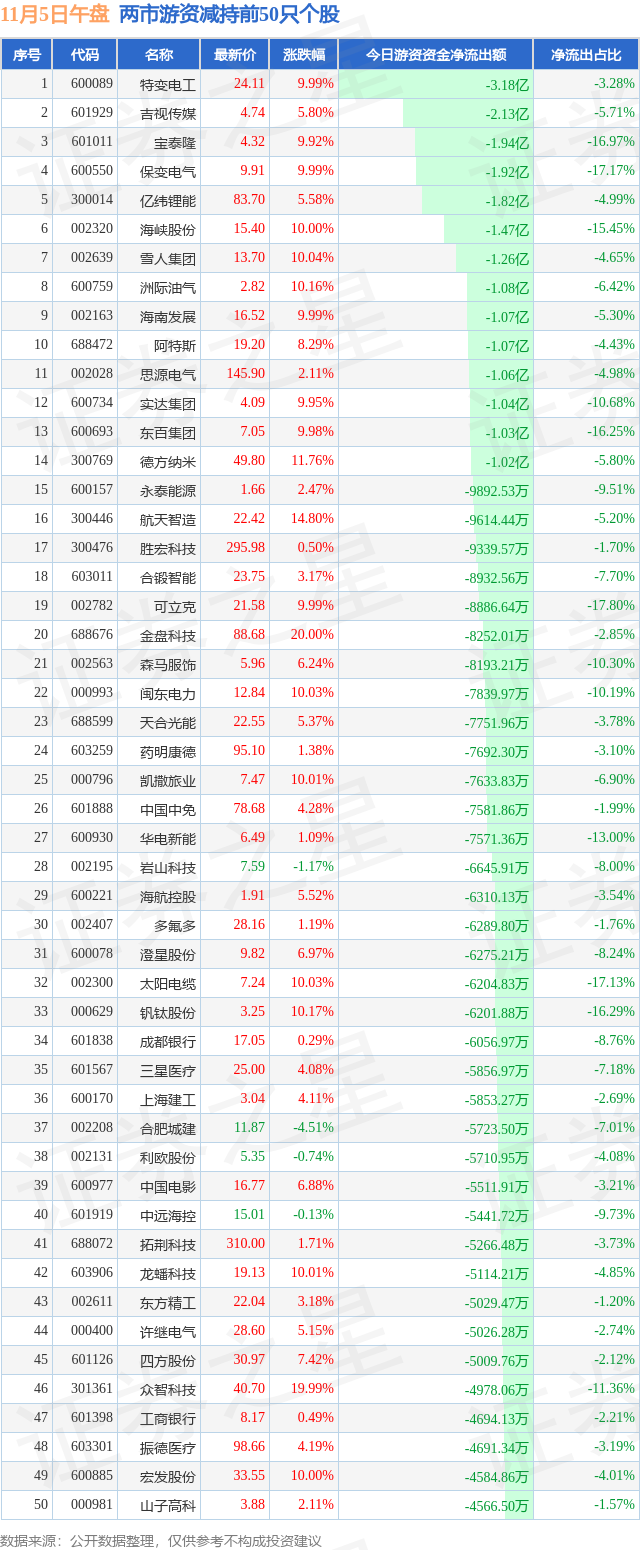 两市游资减持最多的前十只个股为: